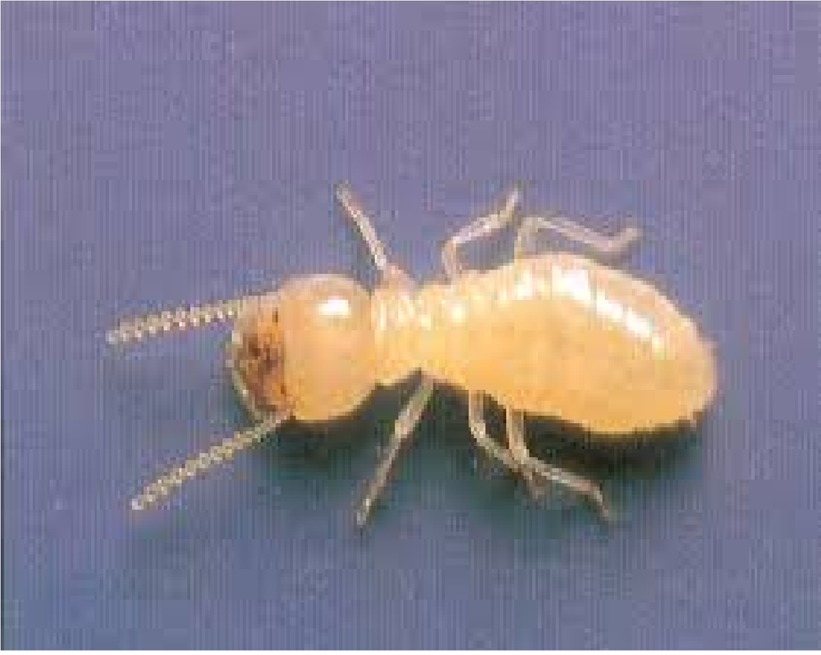工蟻:大多數為淡白色或灰白色,觸角念珠狀,其胸腹間交接部份寬度變化不大,頭部前顎較小,任務為負責餵食蟻后和兵蟻及築巢以及照顧幼蟲。工蟻的壽命約為2~5年。