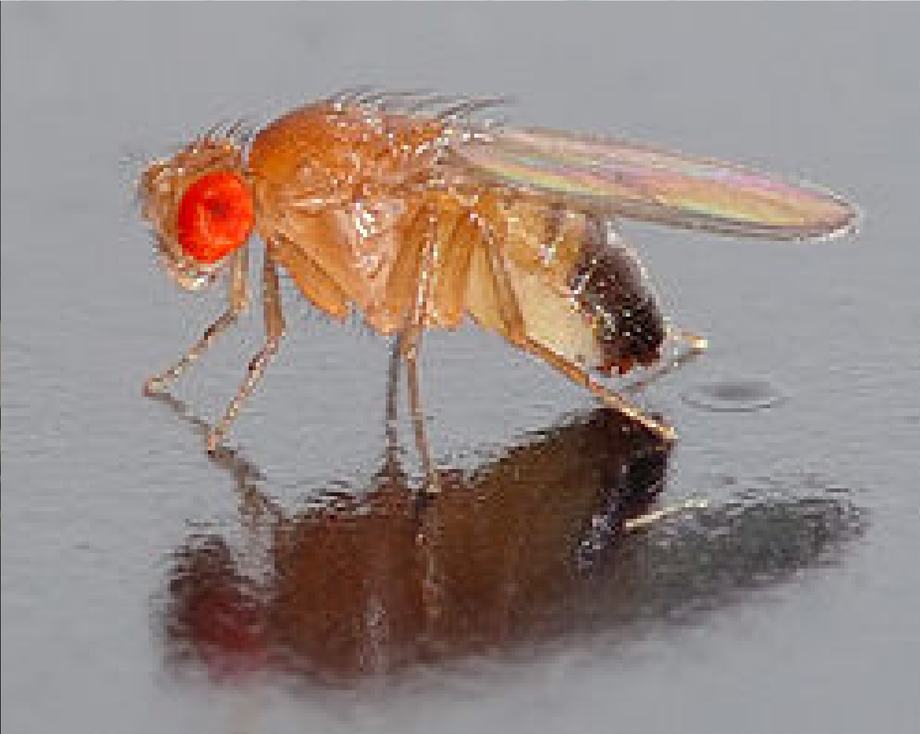 果蠅體長3-5mm,一般體型較小,最大的特徵具有碩大的紅色複眼,腹部肥大。